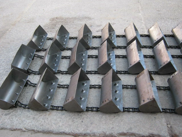 Ківш норійний 390 мм. виліт 170, висота 200 мм, висота за зовнішньою крайкою 155, висота до осі кріплення 60 мм, відстань між кріпленнями 90 мм, кількість отворів 4 шт., місткість ковша 7.5 л, маса ковша 2.8 кг., товщина металу 1.2 мм.