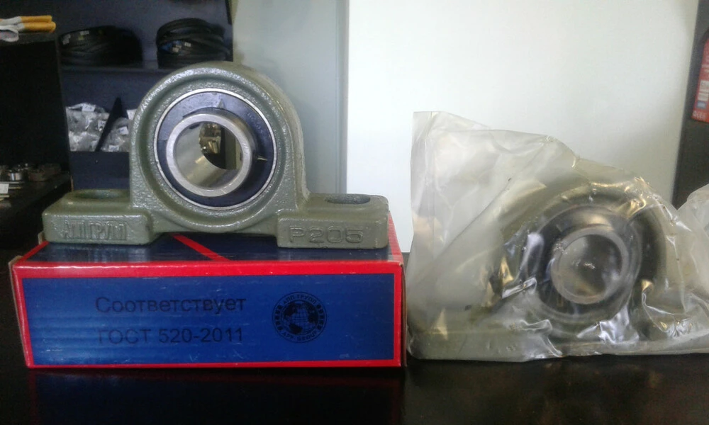 Підшипниковий вузол UCP 205. Внутрішній діаметр: 25 мм, зовнішній діаметр 52 мм, ширина: 38 мм, маса 0,81 кг, динамічна навантаження 13,30 kn.