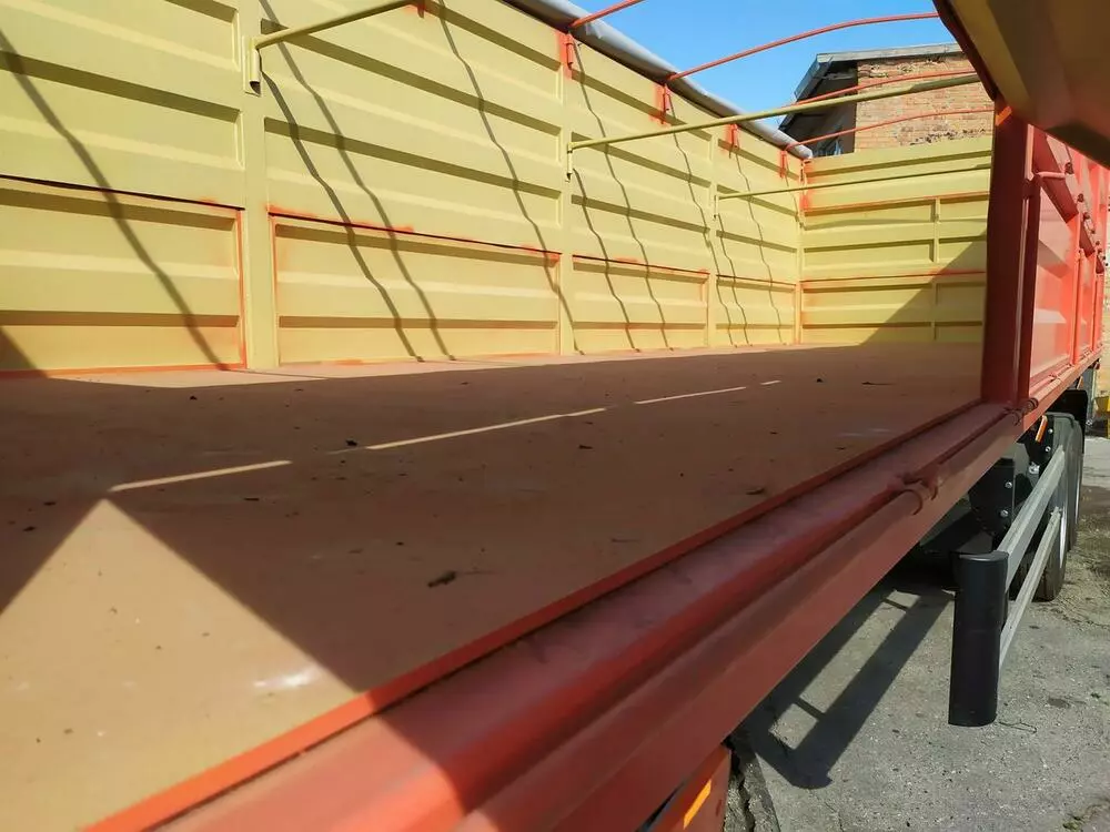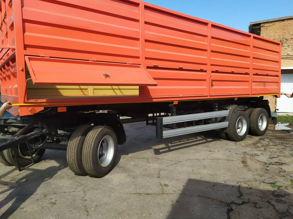 У конструкції трисного причепа високим вимогам відповідають довжина, ширина й об'єм кузова, висота та товщина бортів (можлива встановити додаткові борти). Вивантаження відбувається назад.