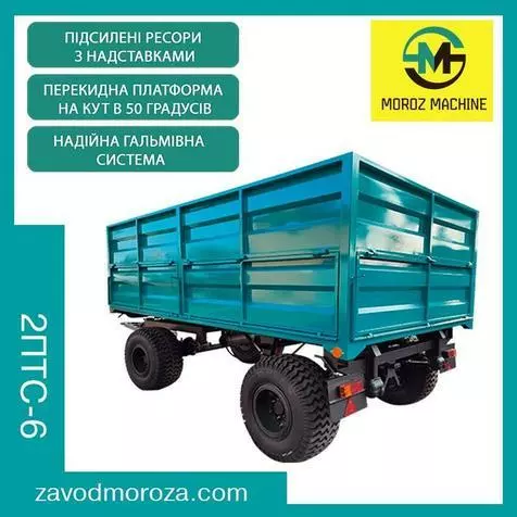 Позитивні відгуки отримує «Завод Морозу» про це причепі вантажопідйомністю 6 тонн, незамінного для транспортування будь-яких вантажів---від сільськогосподарської продукції та будматеріалів. Його можна використовувати в різних умовах, у тому числі польових або по бездоріжжю.