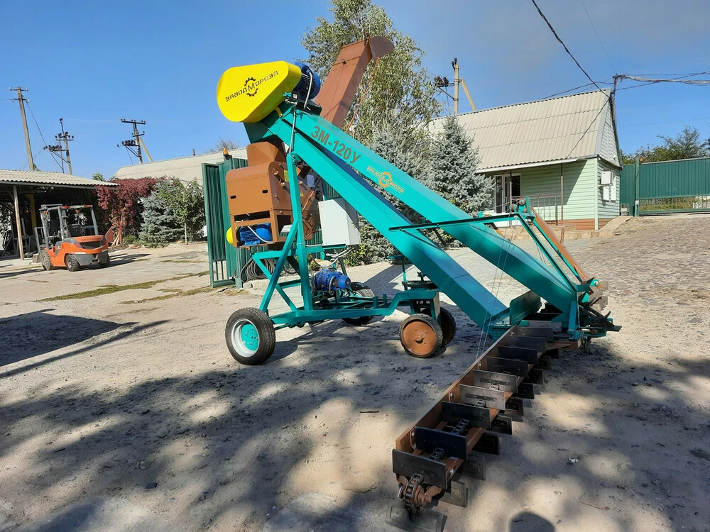 Це спеціальна техніка для великих підприємств, яка прискорить процес оброблення зерна. Наявність тримера дає змогу транспортувати великі обсяги товарів, а його здатність розвертатися в сторони надає можливість здійснювати навантаження в кілька транспортних засобів.