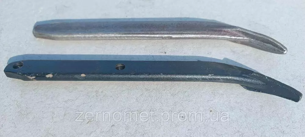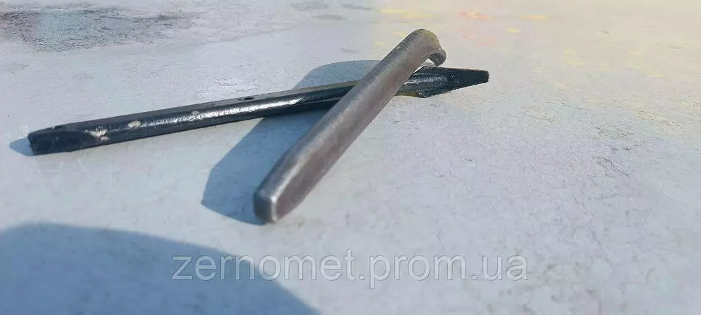Зуб ротационной бороны, кованый, имеет длину L=238мм, рабочая часть l=120мм. Крепится зажимаясь между двумя дисками ротационной бороны, которые в свою очередь фиксируются специпализированными болтами между собой и на стойку бороны.